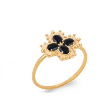 Bague plaqué-or 5 microns 750/000 et Agate noire