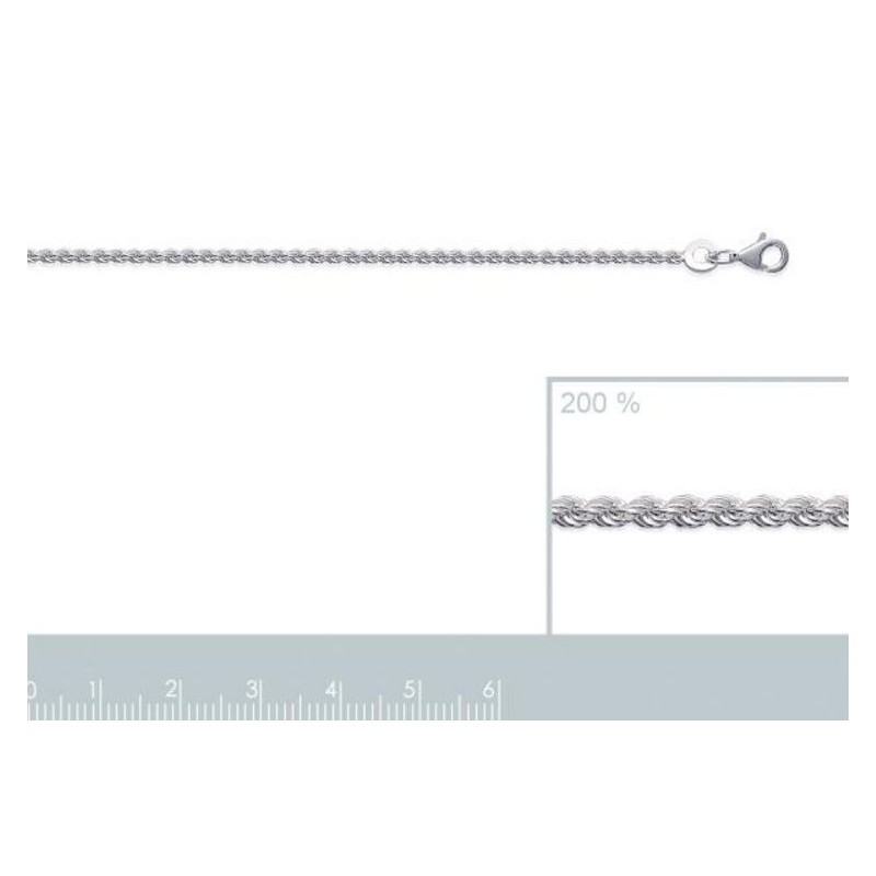 Chaîne argent 925/000 rhodiée maille corde ronde