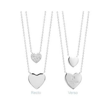 Un bijou! Pour la Saint Valentin ,offrez vous ce beau collier double une partie 44 cm et l'autre 40 cm serti d'oxyde de zirconium et un coeur inscrit je t'aime (série limitée )