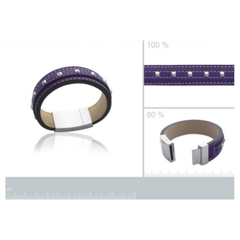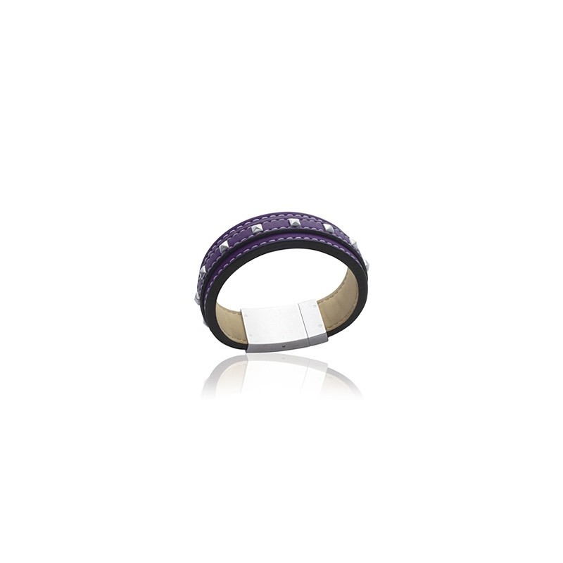 Un bijou! un joli bracelet en acier de cuir mauve qui va vous plaire